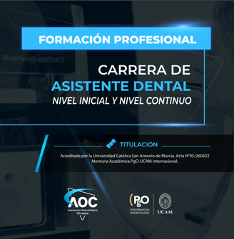 La Asociación Civil Odontológica Córdoba (AOC) propone desarrollar la Formación Profesional Inicial y Continua de Asistentes Dentales y cubrir de este modo una vacancia histórica en la provincia de Córdoba en materia de oferta formativa. La propuesta educativa apunta a la enseñanza de los saberes técnicos específicos, a la incorporación de las nuevas tecnologías y eximios conocimientos sobre bioseguridad pero también pretende acompañar a los profesionales del área en la transformación del modo de pensar la salud, a través de un cambio cultural y organizacional del sistema.